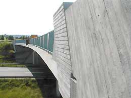 aus Beton. Die ins Geländer eingelegten farbigen Flächen